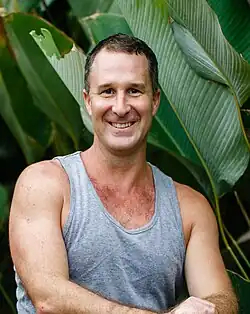 Aaron Star, owner of Hot Nude Yoga, began his version of naked yoga in April 2001. The style combined elements of Ashtanga, Kundalini, and Contact Yoga with elements of Tantra.[16] Because of the success of Hot Nude Yoga, male-only naked yoga groups began to blossom all over the world, from London, Moscow, Madrid to Sydney, often becoming associated with the gay community.[17][18] Nowadays, there are also specific naked yoga clubs for homosexuals that are not simple yoga classes, but rather communities for keeping fit and sharing sexuality.[19] Star says that his practice affords men in cities a way to express closeness and intimacy without having sex.[20]