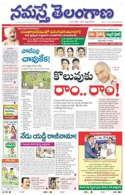 Namasthe Telangana Indian Telugu-language daily newspaper published from Hyderabad, Telangana. It was launched on 6 June 2011.[1][2][3] The paper aims to mainly focus on politics and developments of Telangana State.[4] The newspaper is published by Telangana Publications Pvt. Limited, owned by K. Chandrashekar Rao, the former chief minister of Telangana.[5]