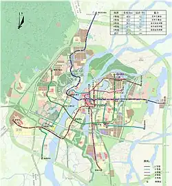 Nanchang Metro, officially Nanchang Rail Transit, is a rapid transit system in Nanchang, Jiangxi, China. The Metro opened for commercial operation in December 2015.[3] As of 2021, four lines are operational. After the latest expansions in June 2025, the network is currently 163.0 km (101.3 mi) in length. A Line 5 is currently still under planning.[4][5]