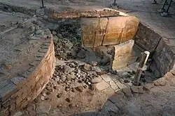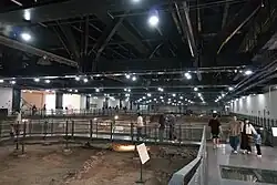 In 1995, during construction at a site on Zhongshan Fourth Road, a corner of a large stone-built pool was discovered. It was later confirmed as part of the Nanyue period ruins. Subsequent excavations revealed more relics from the Nanyue era, including a meandering stone channel, wells, and palace ruins. Additionally, artifacts spanning 12 dynasties—from the Qin dynasty to the Republic of China—were uncovered, including palace ruins of Nanhan (the Southern Han) from the Five Dynasties period.[5] Since 2006, Nanyue Kingdom Palace Ruins have been partially open to the public. The Guangzhou government later established the "Museum of the Nanyue Palace Site" on the original location, which partially opened in 2010 and fully opened in 2014.[6][7][8]