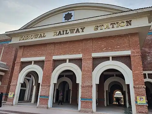 Narowal Junction Railway Station (Urdu: نارووال جنکشن ریلوے اسٹیشن, Punjabi: نارووال جنکشن ریلوے اسٹیشن) is located in Narowal city, Narowal district of Punjab province of Pakistan. It is the junction station of 132.3 km (82 mi) long Narowal-Wazirabad, 36.7 km (23 mi) longNarowal-Dera Baba Nanak till 1947 and 56.9 km (35 mi) long Jassar-Chak Amru railway lines. Now Narowal-Dera Baba Nanak railway line had been permanently closed from 1999 due to aftermath of 1999 Kargil War. The Jassar-Chak Amru railway line is in bad shape now and no passenger service is operated currently.