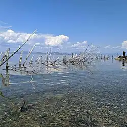 The Naryn (Kazakh: Нарын, Russian: Нарым, Narym) is a river in Eastern Kazakhstan, a tributary of the Irtysh, originating at the junction of the ridges Narym and Sarymsakty of wetland formed by the mountain runoff streams. With its low headwaters and smooth clay-sandy bed, the width of the river valley at places extends to more than 20 kilometres (12 mi); in some places it narrows to 25 to 250 metres (82 to 820 ft). The width of the river is 15 to 25 metres (49 to 82 ft), and the depth varies from 0.5 to 2.5 metres (1.6 to 8.2 ft).