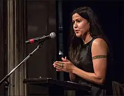 Natalie Diaz (born September 4, 1978)[2] is a Pulitzer Prize-winning[3] Mojave American poet,[4] language activist, former professional basketball player, and educator. She is enrolled in the Gila River Indian Community and identifies as Akimel O'odham.[4] She is currently an associate professor at Arizona State University.[5]