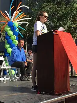 Actress Carly Chaikin emceeing the 2016 NAMI Los Angeles Walk and introducing Secretary of State Alex Padilla