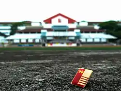 The uniform for male students is a shirt with shoulder epaulettes, secured by square silver buttons embossed with the school crest.[14] The uniform for female students is similar, except that there are no pockets on the blouse and they have a pleated A-line skirt.[14] Students also wear a pin, depicting the college crest, on the uniform's left collar. The main colour of the school uniform is grey.[15]