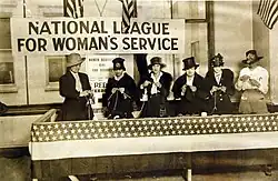 The National League for Women's Service (NLWS) was a United States civilian volunteer organisation formed in January 1917 to provide stateside war services such as feeding, caring for and transporting soldiers, veterans and war workers and was described as "America's largest and most remarkable war emergency organization."[1]