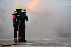 There is also a fire-fighting training simulator (designed to reflect hazards found on ships), radio (GMDSS) training suites, bridge simulation equipment (including a 360° bridge watchkeeping simulator), and engine room simulation equipment.[16] In additional to machinery room equipment (diesel engines and boilers) used for familiarisation and training, there are several workshops and laboratories.[16]