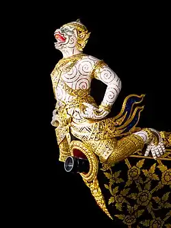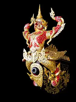 Appearance The figurehead of uncrowned monkey warrior with white body of Hanuman. Decorated with golden lacquer and glass.