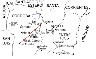 National Route 158 is a highway in Argentina, which is located in the center-east of the province of Córdoba. From the junction with National Route 19 in San Francisco to the junction with National Route 36 in Río Cuarto, it travels 285 kilometres (177 mi).