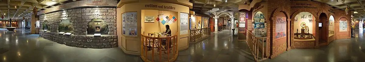 The museum contains seven permanent galleries. From the top floor, these are, in order: Our Science and Technology Heritage, opened in October 2009; Human Biology; the History of the Earth; Fun Science, containing a penny-farthing bicycle gifted by Rajiv Gandhi and a number of other interactive exhibits; Information Revolution; Emerging Technologies; and Water, Elixir of Life, which was opened in December 2010.[3]