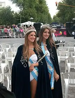 2011 Queen María Jimena Indurain and first Princess Antonella Scollo, just before a Carnival parade