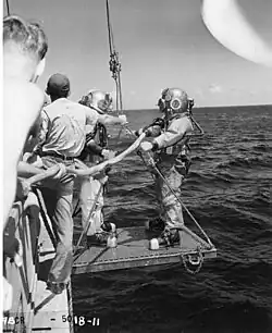 - ^ a b c d e f Navy Divers, Bureau of Naval Personnel Information Bulletin, All Hands, September 1944, pp. 26–30, Evansville Vanderburgh Public Library, Indiana [1]
