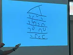 In 1969, Hostos sent one of the pieces to the British Museum so that it could be studied by scholar C.B.F. Walker, author of a number of books on cuneiform writing.[4] Afterwards, Walker responded with an assessment that it possessed characteristics similar to pieces recorded circa 2000 B.C. and that it could be Sumerian in origin.[4] During the 1980s, the president of the Academia Puertorriqueña de la Historia (English: "Puerto Rican Academy of History") Aurelio Tió revived the debate surrounding the pieces and began insisting on the thorough study of the inscriptions, citing that the idea that they were randomly inscribed with a machete was implausible.[7] This historian dismissed the prevailing conclusions surrounding the rocks, noting that too much emphasis had been given to Fewkes' insinuation and that, despite the lack of formal studies by the anthropologist, it had somehow become widely accepted among local archeologists.[17] Tío argued that if authenticated, the Collection could potentially represent one of the biggest archeological finds in the Americas and the Western Hemisphere, a position that he defended until his death.[8][10] He unsuccessfully tried encouraging the Smithsonian, Harvard University, University of Valladolid, Yale University, University of Pennsylvania, the British Museum and archeologist Marcel Sigrist to retake the study of the pieces.[3] In total, Tío wrote over 30 papers on the Collection evaluating its potential significance to local history and the possible influence on the Taíno population, which did not receive academic examination or rebuttals from the archeological community.[7][6] He also commissioned a professional photographer to capture the first high quality images of the pieces, which were to be re-published in the media.[4] Linguists from Spain, Portugal, Switzerland and France were involved in the issue, with the latter concluding that they could be legitimate.[6][13]