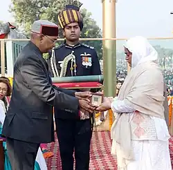 On 26 January 2019 on Republic Day, President Ram Nath Kovind posthumously awarded the Ashoka Chakra to Nazir Ahmad Wani. The award was accepted by his wife Mahajabeen at an official ceremony during the Delhi Republic Day parade.[20] He was the first recipient of the Ashok Chakra award from the Kashmir region of the Indian state of Jammu and Kashmir.[6]