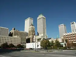 The Oil Capital Historic District was added to the National Register of Historic Places in 2010. Third Street bounds it on the north, Seventh Street on the South, Cincinnati Avenue on the east, and Cheyenne Avenue on the west. This area features many historic Downtown office buildings constructed during the 1920s and 1930s.[2]