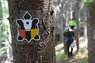 The distinctive turtle markers of the Sentier Nepisiguit Mi'gmaq Trail.