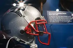 In 1994, the Patriots wore the "Pat Patriot" helmets and plain white striped pants from two seasons prior as alternates as part of the NFL's 75th-anniversary celebration. In 2002, NFL teams were allowed to add a permanent third jersey to be worn in a maximum of two games. The Patriots reintroduced a red jersey as their alternate, complemented with the old-style "Pat Patriot" helmet.[103] In 2003, the Patriots changed their alternate to a silver jersey with blue pants. For this uniform, the "Flying Elvis" helmet was used.[103] The uniform was identical to the white jersey with any areas of white replaced by silver. These uniforms were dropped after 2007. No alternate uniform was used in 2008. In 2009, the red alternate was reintroduced, again accompanied by the "Pat Patriot" helmet. An alternate white road jersey was also worn with the older helmet for one game, using red numbers, in tribute to the 50th anniversary of the AFL. The red alternate gained a blue outline around the numbers in 2010 and this was worn through 2012. The Patriots temporarily retired their alternate red uniforms in 2013, thanks to a new NFL rule outlawing throwback alternate helmets, and restricting teams to one helmet shell only.[115] However, after the NFL reinstated the use of alternate helmets in 2022, the Patriots brought back the throwback red uniforms.[116]