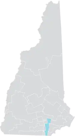 The district is split evenly between New Hampshire's 1st congressional district and New Hampshire's 2nd congressional district.[4] It borders the state of Massachusetts.[1]