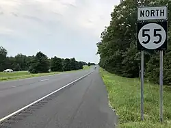 In 1969, the first segment of Route 55 opened between Maurice River Township and the Vineland-Millville border, connecting to Route 47 at both ends.[2][16] In the 1970s, the planned northern terminus of Route 55 was moved to Route 42 in Deptford. The portion of Route 55 between Route 47 in Millville and US 40 in Franklin Township was completed in the mid-1970s while the portion between US 40 and Route 42 was completed in October 1989.[3][17][18] The Route 55 freeway has been instrumental in bringing economic development to southern New Jersey. The most common use of the highway is as a commuting route northward to Philadelphia. Following its completion, residential development in the southern part of Gloucester County has increased.[18]