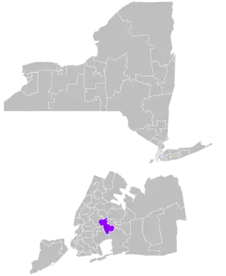 The district overlaps with New York's 5th, 6th, 7th, 8th, 12th, and 14th congressional districts, and with the 23rd, 25th, 27th, 28th, 30th, 31st, 34th, 37th, 38th, and 39th districts of the New York State Assembly.[5]