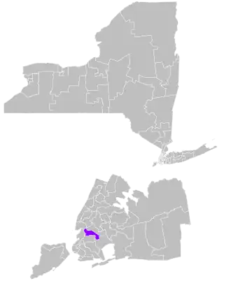 The district overlaps with New York's 7th, 8th, 9th, and 10th congressional districts, and with the 43rd, 50th, 51st, 52nd, 54th, 55th, 56th, and 57th districts of the New York State Assembly.[6]