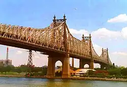 New York State Route 25 (NY 25) is an east–west state highway in downstate New York in the United States. The route extends along the central parts and North Shore of Long Island for just over 105 miles (169 km) from east midtown Manhattan in New York City to the Cross Sound Ferry terminal at Orient Point on the end of Long Island's North Fork. NY 25 is carried from Manhattan to Queens by way of the double-decked Queensboro Bridge over the East River.