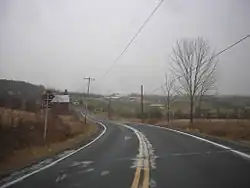 Running along the northwestern side of the Orchard Green Golf Course, the route passes the entrance near the junction with Becker Road. At this junction, NY 397 turns northward, winding past multiple homes before reaching the hamlet of Dunnsville. In Dunnsville, NY 397 reaches a junction with US 20 (Western Avenue), marking the northern end of NY 397. Dunnsville Road continues north towards the Schenectady County line and NY 406.[3]