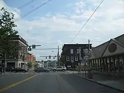 In the 1930 renumbering of state highways in New York, NY 48 was assigned to a previously unnumbered roadway between downtown Syracuse and Oswego. From Van Buren north to Oswego, NY 48 roughly followed its modern alignment;[2] south of Van Buren, NY 48 was routed on State Fair Boulevard and Geddes Street to terminate at NY 5, then routed on Erie Boulevard.[7] The route was realigned slightly within Syracuse between 1938 and 1940 to use portions of Hiawatha Boulevard and West Genesee Street (as well as a new portion of State Fair Boulevard) to meet NY 5 at the modern intersection of Erie Boulevard and Genesee Street.[8][9]
