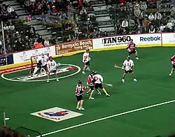 The Titans defending against the Calgary Roughnecks during the NLL Championship game in 2009