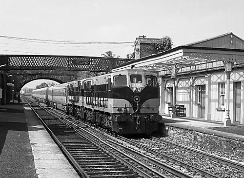 Newbridge railway station (Irish: An Droichead Nua) is a station on the Dublin to Cork railway line and Dublin Commuter Service.[1] It serves the town of Newbridge in County Kildare, Ireland and lies approximately 4 kilometres (2.5 mi) from the Irish Army Curragh Camp.