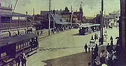 This preponderance of small houses is indicative of the working-class employment of most Newtown residents, many of whom worked in the city or at local shops, factories, warehouses, brickyards and at the nearby Eveleigh Railway Workshops. Retail and service trades dominated the suburb increasingly throughout this period, with tradesmen and shopkeepers together accounting for 70–75% of the working population.[21] During the late 19th century and early 20th century, Newtown prospered, so much so that in the Jubilee Souvenir of the Municipality of Newtown, published in 1912, it was described as "one of the most wealthy suburbs around Sydney".[22]