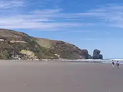 This field is smaller than the other three and has far fewer basaltic volcanic centres. However at least 16 volcanic centres, mostly scoria cones associated with lava flows of limited hawaiite to nepheline hawaiite composition are known.[1] Some of the basalt deposits in this region of the coast are now known to be related to the West Ngatutura volcanic field with a stratigraphic age of c. 3.5 Ma around 60 km offshore.[2][5] The earlier work on the field had suggested fewer centres being:[6]