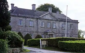 Nibley House, North Nibley in Gloucestershire is a Grade II* listed house on the English Heritage Register.[1] The Neoclassical Georgian facade dates from 1763 behind which lies the Jacobean manor house built in 1609 by John Smythe the Elder, Steward at the time to Lord Berkeley. Nibley House is known as an example of exceptional Georgian design and for its stucco rococo style ceiling located in its drawing room thought to have been inspired by the work of the famous Swiss-Italian stuccoist Giuseppe Cortese. Today Nibley Hall is a private residence.[2]