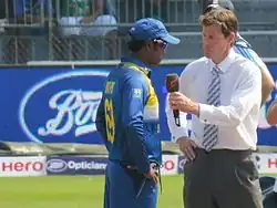 Nick Knight commentary at the toss with Sri Lanka captain Angelo Mathews during England tour in Sri Lanka 2015