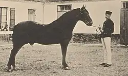 In 1908, breeder Maurice de Gasté cited Niger as one of the "founders of the Normandy trotting breed".[44] According to Albert Viel, Niger bequeathed to his descendants a compact, harmonious conformation in a close-to-earth style, with very brilliant gaits.[6] He was also known to have passed on horning to around a third of his foals.[45] Veterinary surgeon Paul François Charon cites a breeder who lost a lot of money with two of Niger's foals affected by cornage, one of which had to be castrated and then sold in the trade.[46] The influence of Niger on the French Trotter was discussed at the end of the 19th century, notably by elected official and breeder Edmond Gast, who declared in 1889: