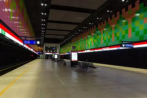 Niittykumpu (Finnish) or Ängskulla (Swedish) is an underground station on the western metro extension (Länsimetro) of the Helsinki Metro.[2] The station is located 1,9 kilometres east from Matinkylä metro station and 1,1 kilometres west from Urheilupuisto metro station.