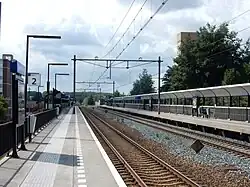 Nijmegen Dukenburg is a railway station located in the south west of Nijmegen, Netherlands. The station was opened on 2 June 1973 and is located on the Tilburg–Nijmegen railway. The train services are operated by Nederlandse Spoorwegen. The main station of Nijmegen is Nijmegen railway station.