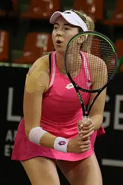 Starting the year inside top 100, allowed her entering the main draw of the Australian Open.[8][6] However, she lost to Anastasia Pavlyuchenkova in the first round. In doubles, she reached the third round, alongside Darija Jurak.[14] She then competed at the $60k Andrézieux-Bouthéon Open, where she reached quarterfinals in singles and semifinals in doubles.[5] After that, she lost in the first round of all singles tournaments, including the French Open and US Open.[6] In doubles, she reached semifinals of the $60k Open de Cagnes-sur-Mer and $80k Macon Tennis Classic, and the second round of the French Open.[5][6]