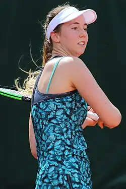 In January 2013, she won Grade-2 Slovak Junior Open, defeating Maria Marfutina in the final.[3] There she also won the title in doubles.[4] She followed this with the quarterfinal of the Grade-1 Czech International Junior Indoor Championships and the semifinal of the Grade-2 ITF Junior Circuit tournament in Monastir, Tunisia.[3] She continued to progress, reaching the singles semifinals and winning the doubles title at the Grade-1 International Junior Championships, singles and doubles titles at the Grade-2 Open Ouest Provence in Istres and the singles final and doubles title at the Grade-1 Open International Junior de Beaulieu-sur-Mer.[3][4] She then took part at the Trofeo Bonfiglio, where she reached the second round in singles and the first round in doubles.[3][4] At the 2013 French Open, she made her Grand Slam debut, but lost in the first round to Jamie Loeb.[3] However, in doubles, she reached semifinals alongside Alice Matteucci.[4] Same results in both singles and doubles, she made at the 2013 Wimbledon.[3][4] In August, she reached the final of the Grade-1 Canadian Open Junior Championships in doubles. At the 2013 US Open, she reached quarterfinals in doubles. In 2014, she won the Grade-1 AGL Loy Yang Traralgon Junior International and then entered the semifinals of the Australian Open, both in doubles.[4]