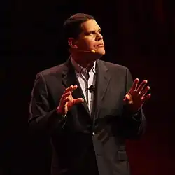Reginald "Reggie" Fils-Aimé joined Nintendo in December 2003 as the Executive Vice President of Sales and Marketing. He was responsible for all sales and marketing activities for Nintendo in the United States, Canada, and Latin America. Fils-Aimé shot to fame in May 2004 with the opening line of Nintendo's E3 press conference: "My name is Reggie. I'm about kickin' ass, I'm about takin' names, and we're about makin' games." His theatrical antics, flying in the face of Nintendo's long-standing "kiddie" image, gained a cult following soon after, with many gamers calling him the "Regginator".[2] Following the conference, many images of him spread across the Web. Fils-Aimé is considered to be responsible for revamping Nintendo's public relations in North America, leading many fans and members of the press to dub his arrival the "Reggielution" (after "Revolution", the code name for the Wii).[3] He speaks highly of the "blue oceans" strategy, which attempts to bring in people who are not traditionally gamers.[4] His expertise is with youth marketing,[2] although he made an effort to reach out to the elderly using games like Brain Age: Train Your Brain in Minutes a Day! and Nintendogs.[2] In October 2007, Fils-Aimé was promoted to president and chief operating officer of NoA.[5] On February 21, 2019, Fils-Aimé publicly announced that he is now retiring and handing over his presidency of Nintendo of America to Doug Bowser.