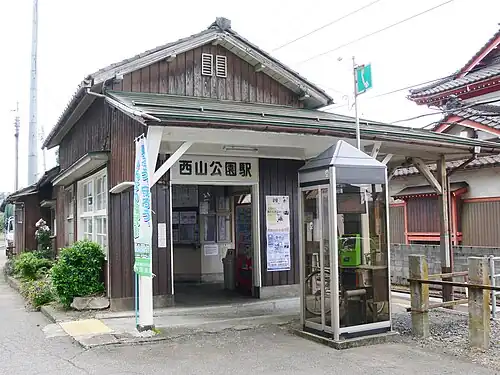 Nishiyama-Kōen Station (西山公園駅, Nishiyama-kōen-eki) is a Fukui Railway Fukubu Line railway station located in the city of Sabae, Fukui Prefecture, Japan.