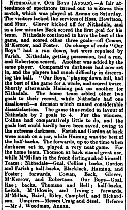 - ^ "Nithsdale v Vale of Nith". Dumfries & Galloway Standard: 3. 1 December 1886.