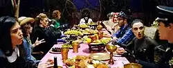 Filmed in technicolor format, the music video for "Nobody's Perfect" was shot at Nu Boyana Film studios in Sofia, Bulgaria, on 24 March 2011 and was directed by Emil Nava.[14][18][19][20] The music video premiered on 14 April 2011 in the United Kingdom through Jessie's Vevo channel.[21] The music video is inspired by Lewis Carroll classic tale Alice's Adventures in Wonderland, Jessie J sits in a banquet table similar to the Mad Hatters' tea party.[19][22][23] Jessie J is shown in a hall of doors that gives a resemblance to the curious hall in the first chapter of Alice in Wonderland.[19][22][23] Jessie J also rolls in tar and appears dressed as the Roman goddess Libertas, who is better known as the robed female figure of the Statue of Liberty, what could be interpreted as Black-and-white dualism.[22][23] After completing the filming sessions, Jessie J described the video as her favorite done so far.[24]