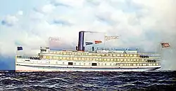 On April 9, 1895, the Newport News is launched from the city for which it is a namesake.[19] The trial trip took place on June 6, 1895 under the command of Captain Georghegan between Old Point Light and Windmill Point Light, a distance of 46 miles and back. The average speed was 19 miles with a maximum of 21 miles. The test was considered a success.[20] On June 18, 1895 it was formally turned over to its owners.[21] A formal ceremony took place. The same day, it made the trip upriver to Washington leaving Norfolk at 6:30 pm on rough waters and arriving in Washington at 6:00 am. The public was invited to visit the ship on Sunday, June 23, 1895. It would take over for a few days the evening trip while the other ships were overhauled until July 1. Starting on July 4, 1895, the 1,500-ton ship would provide run the day trip.[22]