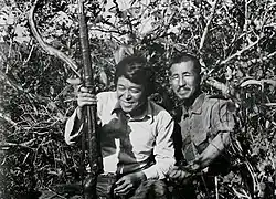 Suzuki (left) and Hiroo Onoda, in February 1974 on Lubang Island. The image was intended to be proof that Onoda was alive.