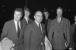 L–R: Harold Shepherdson, Colin Bell, Alf Ramsey, Norman Hunter, Jack Charlton.