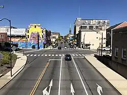 At its height, Norristown was an industrial, retail, banking, and government center. Breweries, cigar factories, textile mills, icehouses, foundries, rolling mills, and lumber yards provided ample employment for skilled laborers and artisans.[6] The downtown featured two department stores, several theaters, and enough goods and services that residents never had to leave town to find anything they needed.[7] Although primarily settled by the English and a handful of Germans, Scots, Dutch, and Swedes, in the mid-1800s the Irish began arriving in large numbers, followed by waves of Italians at the turn of the 20th century.[8]