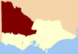 Located in the far north-west of Victoria, "North-Western Province" was defined in the Victoria Constitution Act 1855, as "Including the Counties of Talbot and Dalhousie, and the Pastoral District of the Wimmera and of the Loddon, except the proposed County of Rodney."[3]