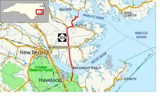 North Carolina Highway 306 (NC 306) is a primary state highway in the U.S. state of North Carolina. The highway provides a link between Havelock, Minnesott Beach, and Grantsboro. The route is primarily rural, and uses two free ferries to cross the Neuse and Pamlico Rivers before reaching NC 92/NC 99 near Gaylord.