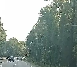 The North Carolina Department of Transportation (NCDOT) measures average daily traffic volumes along many of the roadways it maintains. In 2015, average daily traffic volumes along NC 67 varied from 3,100 vehicles per day west of the intersection with Smithtown Road in Yadkin County to 55,000 vehicles per day along Silas Creek Parkway north of the Country Club Road interchange in Forsyth County.[5][6][7] NC 67 is included within the National Highway System[a], along Silas Creek Parkway between Wake Forest Road and US 421.[8] Additionally, NC 67 connects to the National Highway System at I-77 and US 21 east of Jonesville.[9]